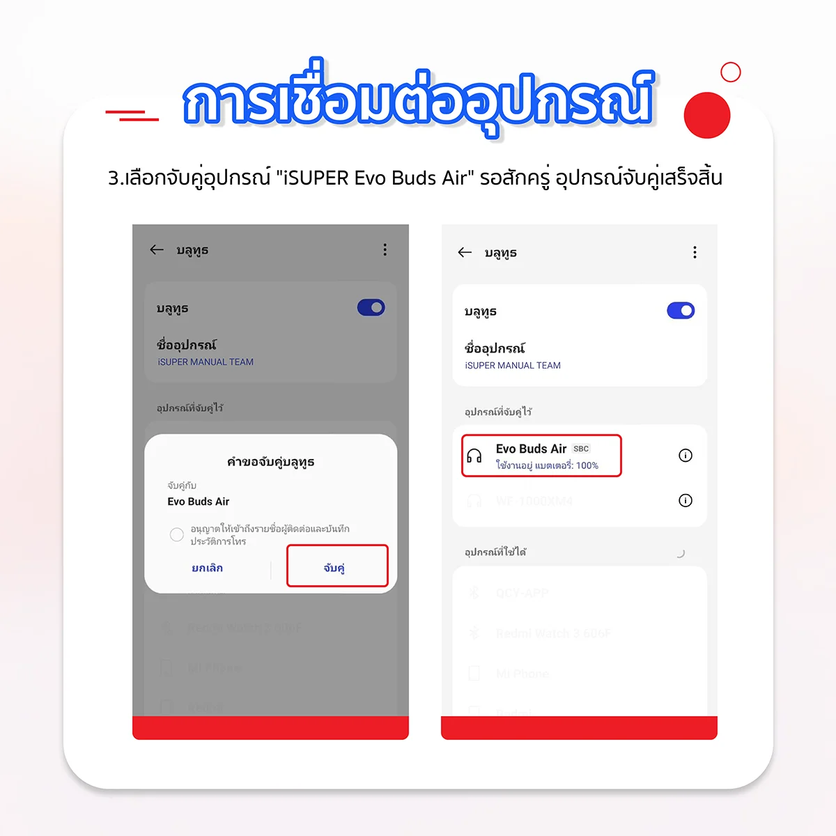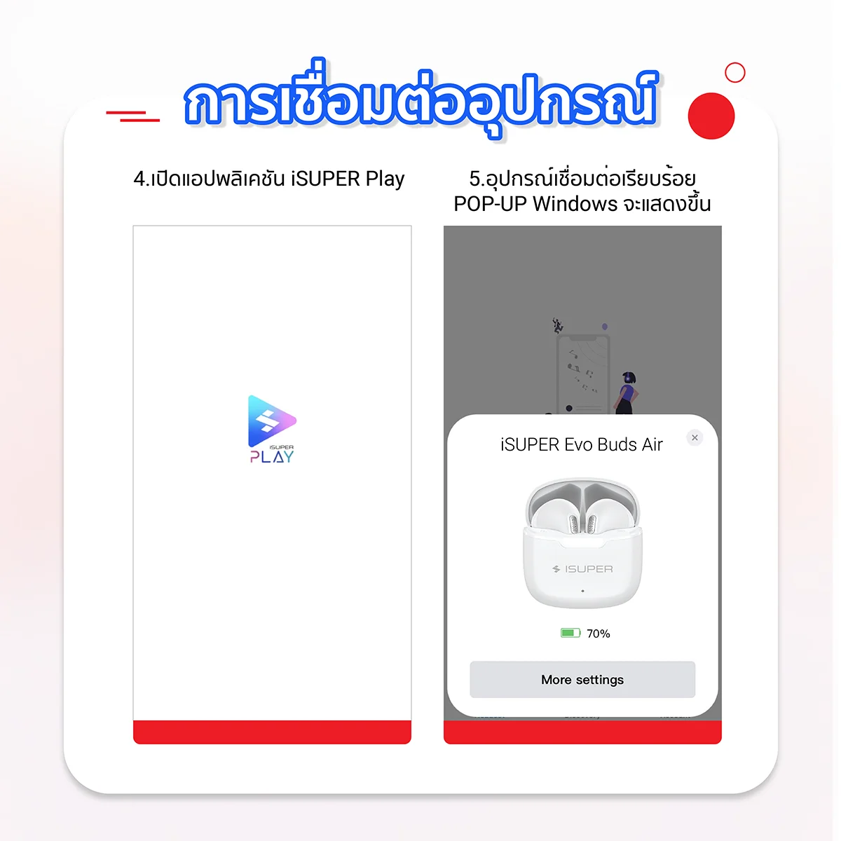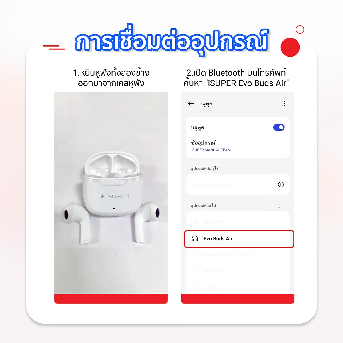 คู่มือการเชื่อมต่อหูฟัง iSUPER Evo Buds Air
