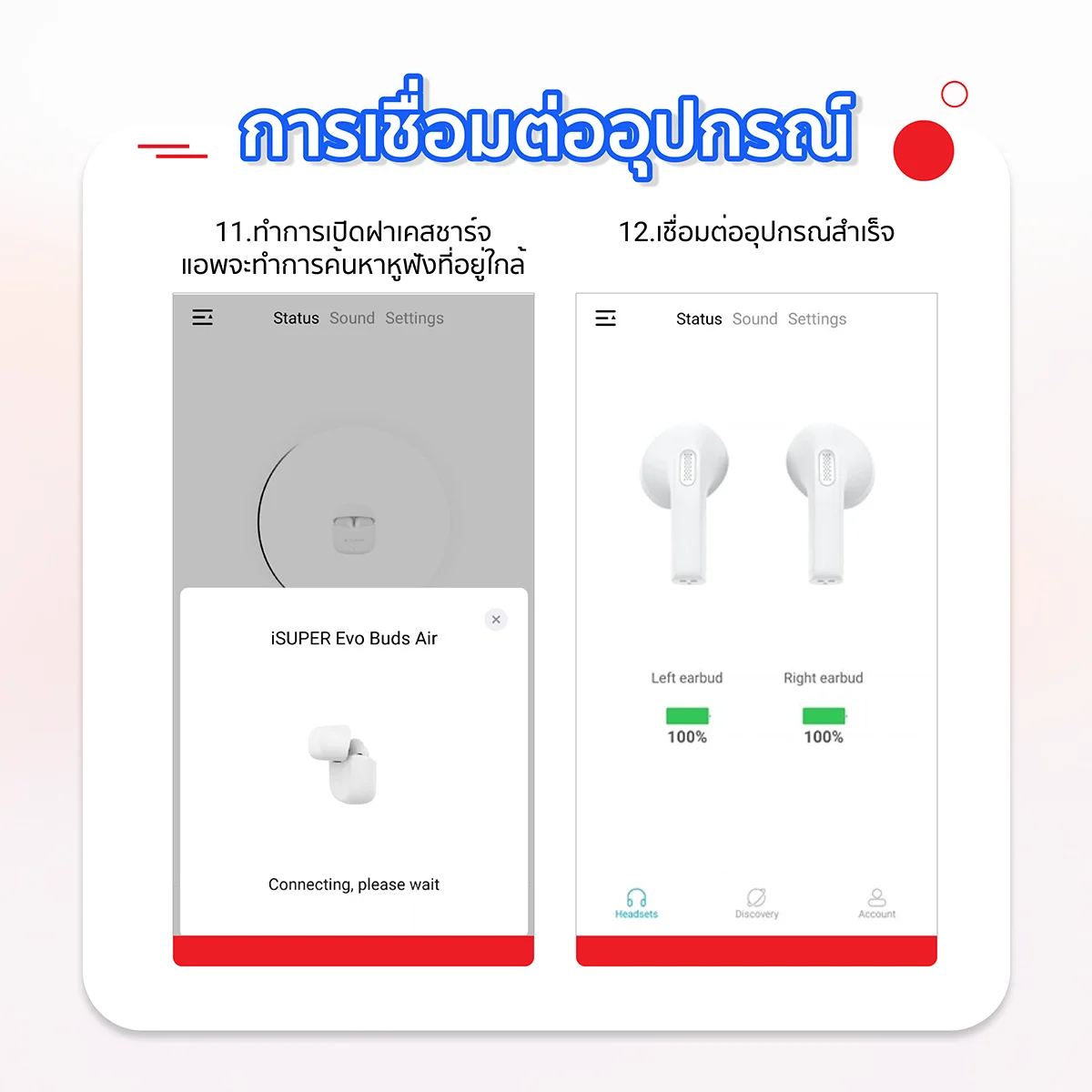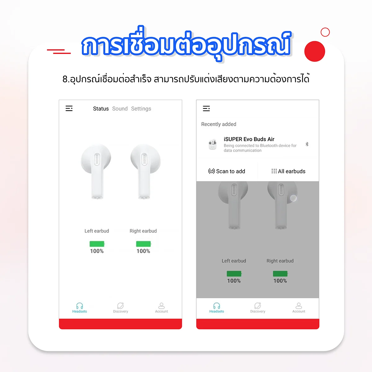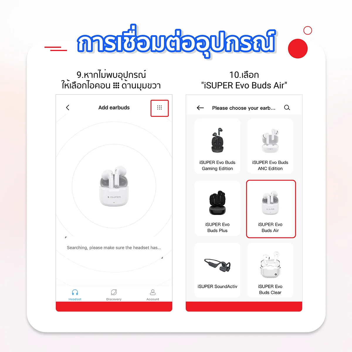 คู่มือการเชื่อมต่อหูฟัง iSUPER Evo Buds Air