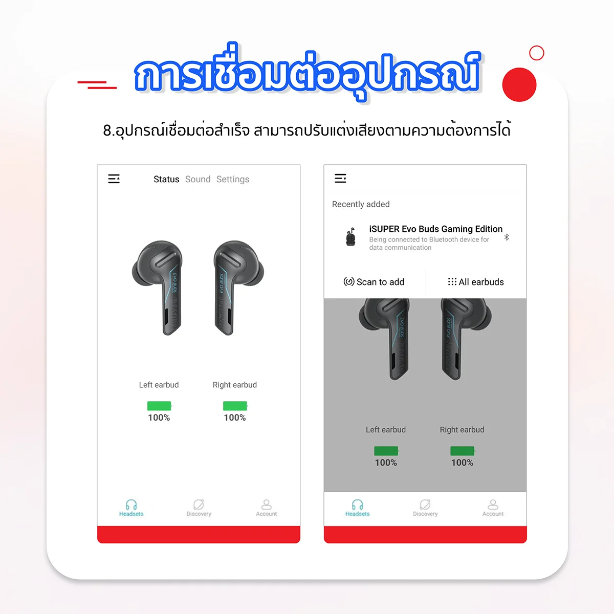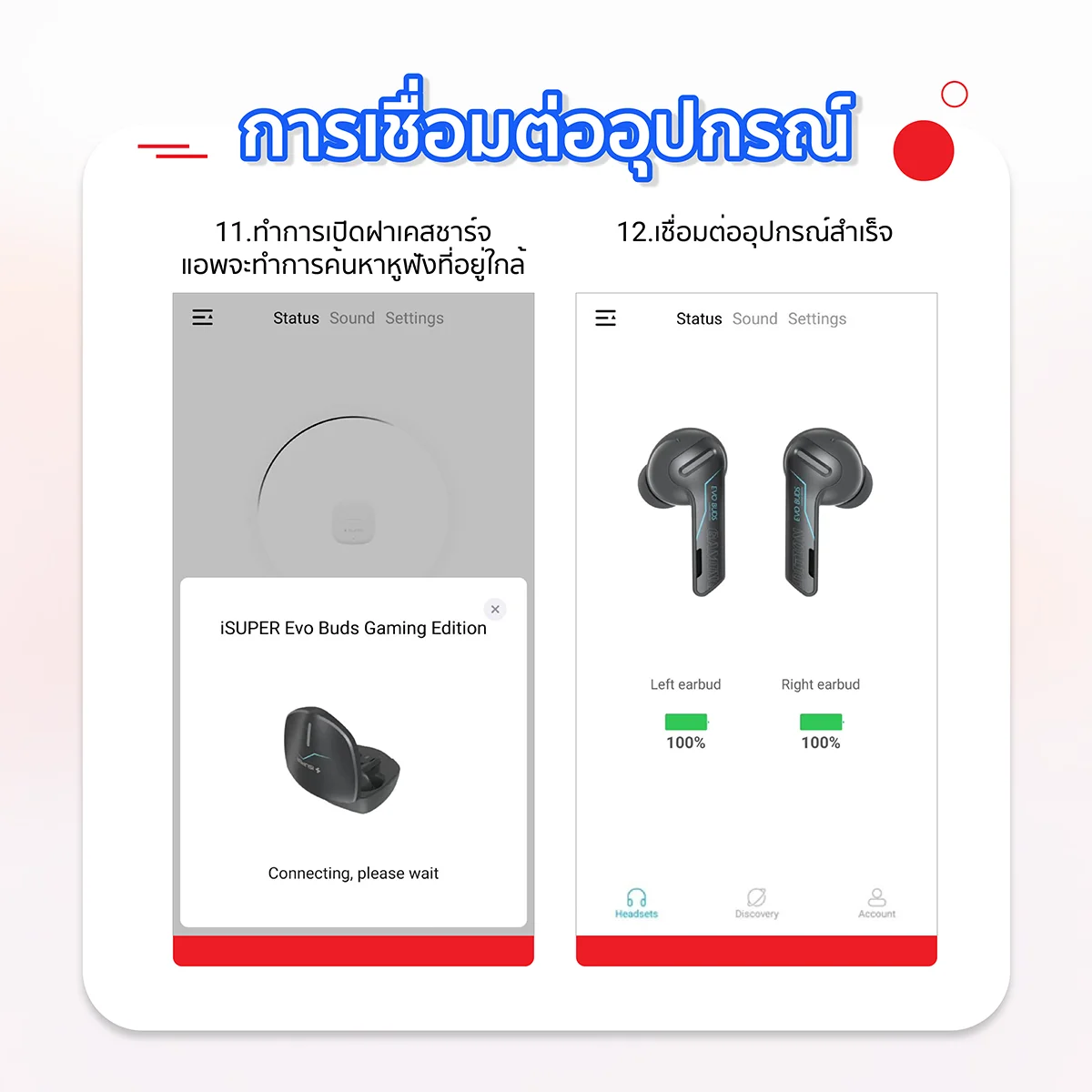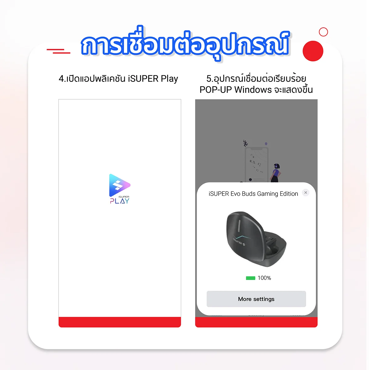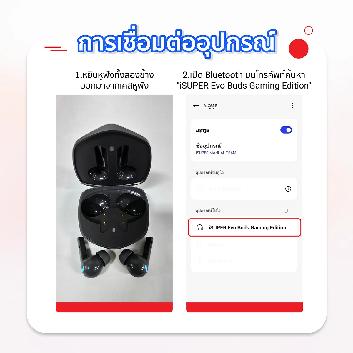 คู่มือการเชื่อมต่อหูฟัง iSUPER Evo Buds Gaming Edition