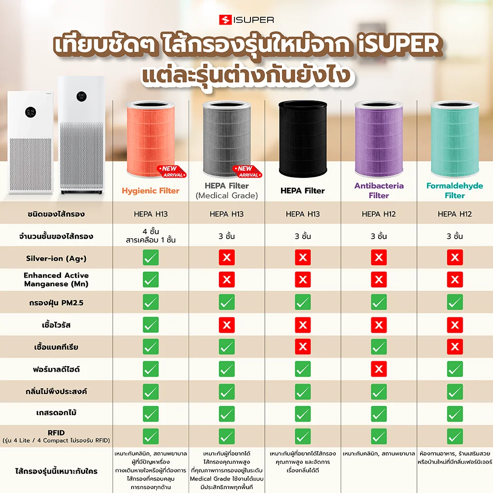 ไส้กรองเครื่องฟอกอากาศ iSUPER RFID สำหรับ Xiaomi คือคำตอบสำหรับคุณ! ออกแบบมาเพื่อใช้กับเครื่องฟอกอากาศ Xiaomi โดยเฉพาะ ช่วยให้คุณหายใจได้สะอาด ปลอดภัย และสดชื่นยิ่งขึ้น
