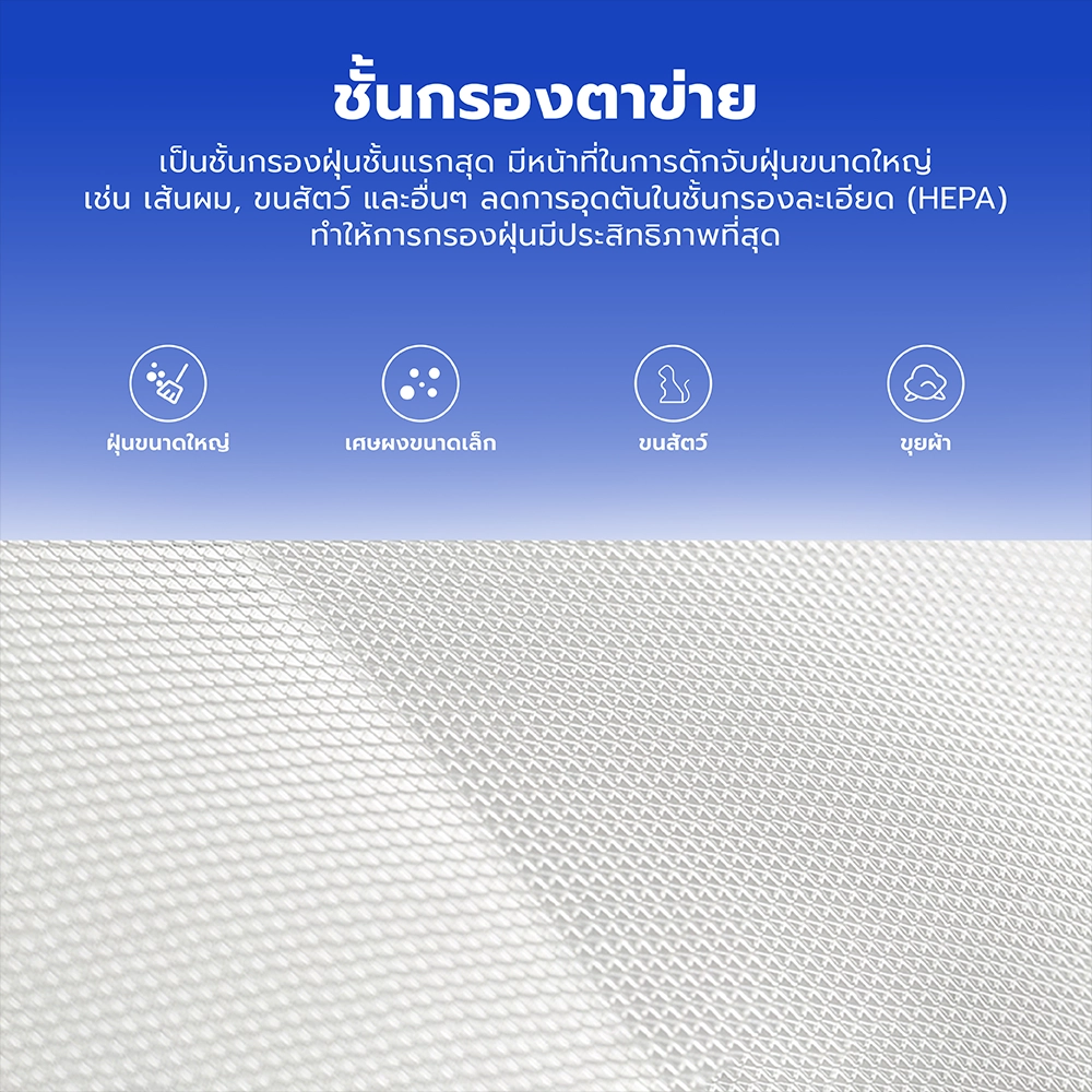 1. ชั้นกรองตาข่าย เป็นชั้นกรองฝุ่นชั้นแรกสุด